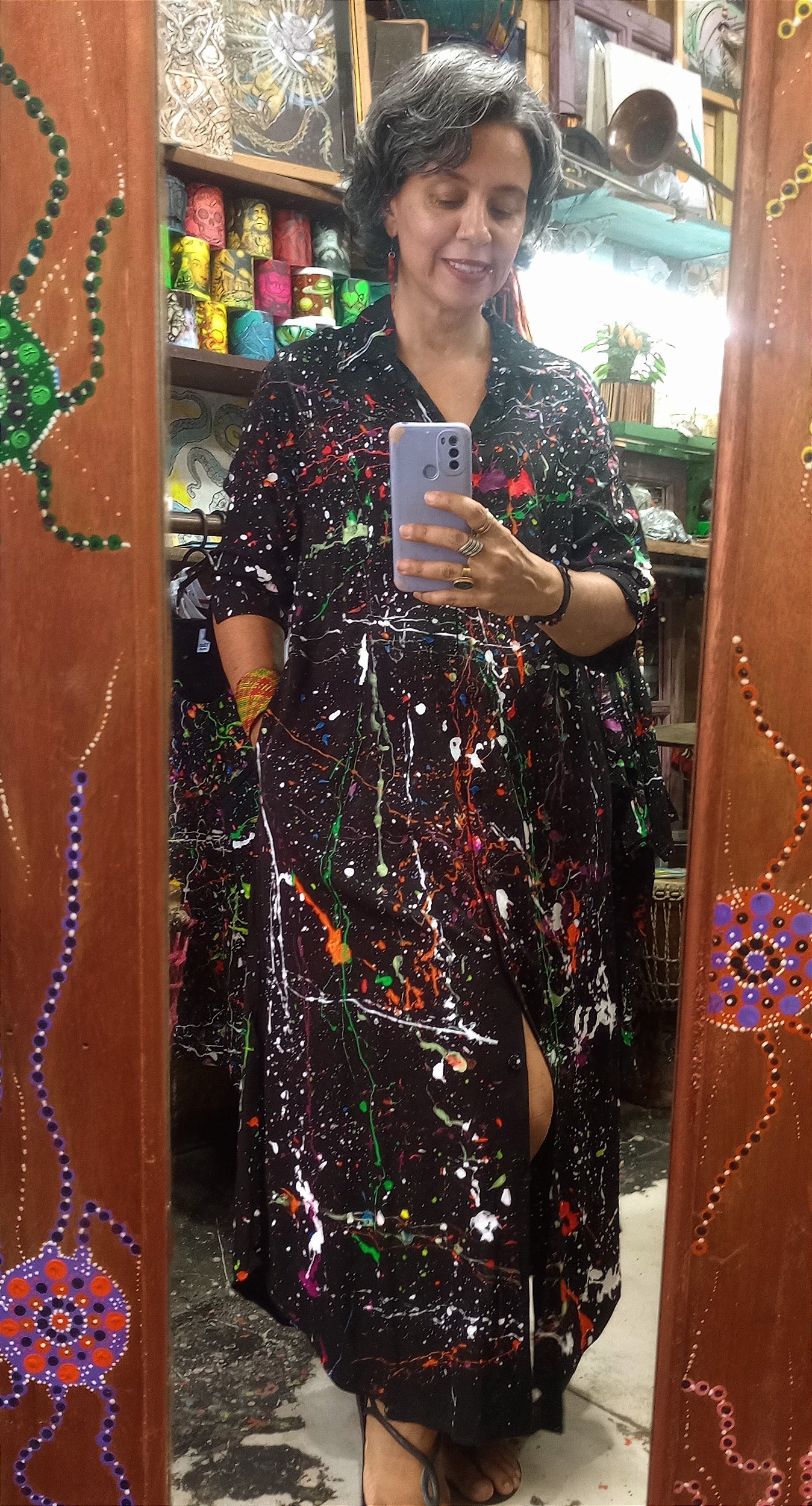Vestido Chamise Longo Viscose, Pintura Abstrato.